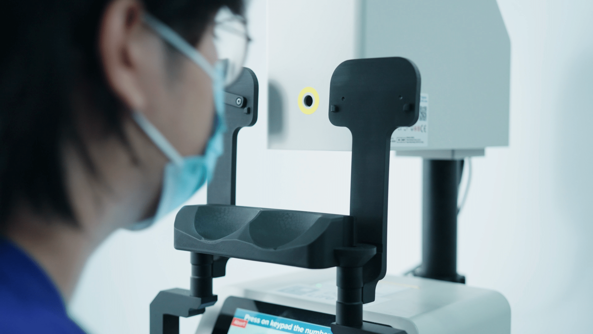 A patient’s visual acuity can be accessed by displaying optotypes at varying sizes
